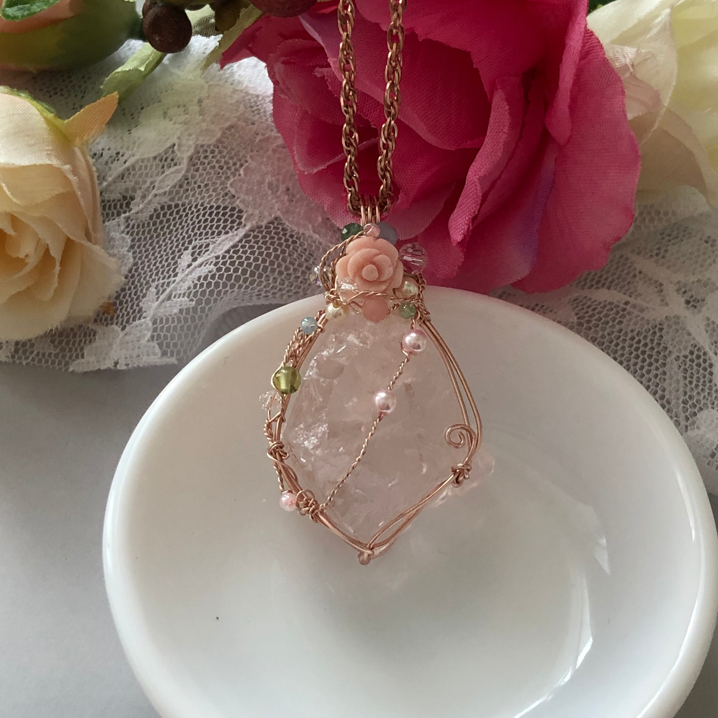ふんわり心温かくなるローズクォーツペンダントトップです。